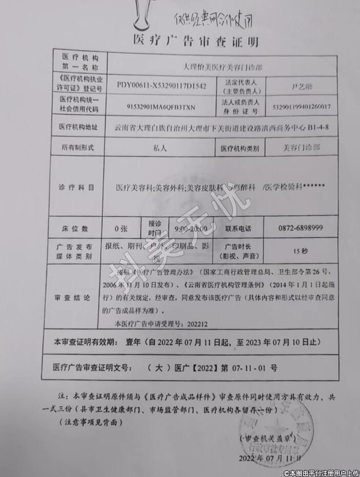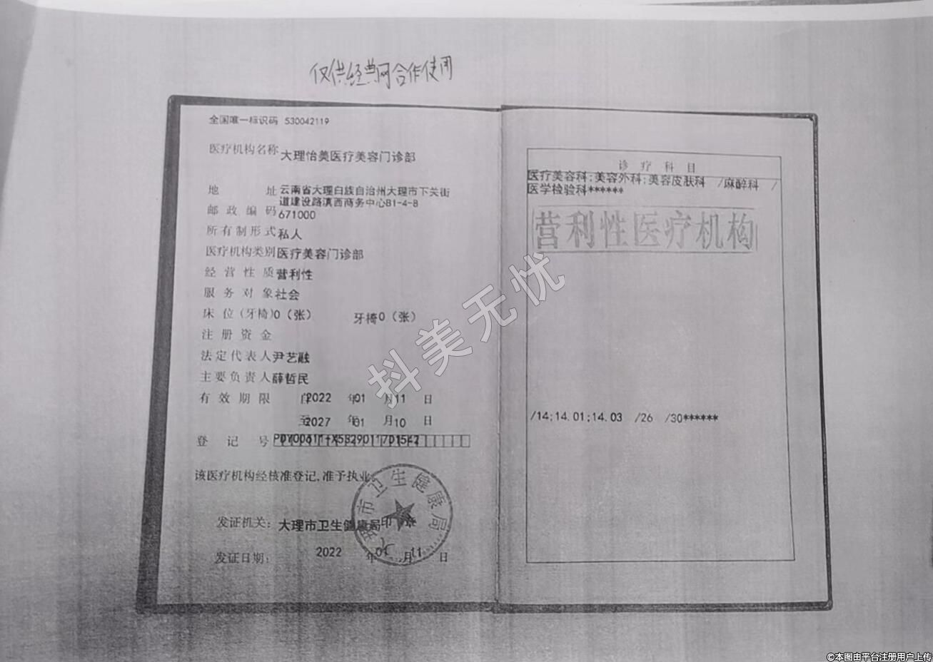 醫(yī)療機(jī)構(gòu)名稱:大理怡美醫(yī)療美容門診部