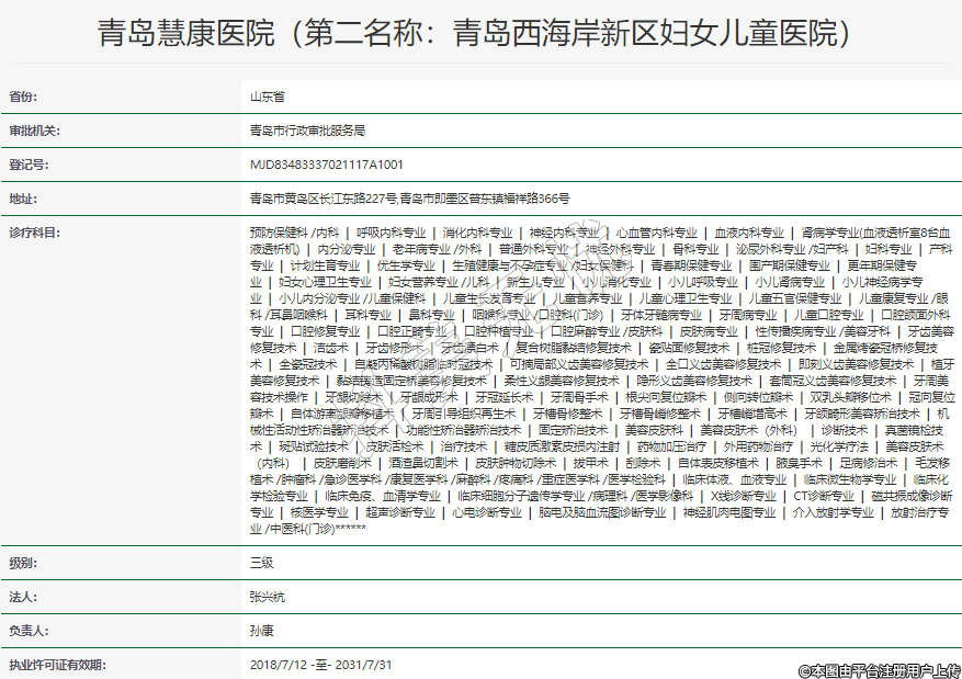 執(zhí)業(yè)許可證有效期:2018/7/12 -至- 2031/7/31
