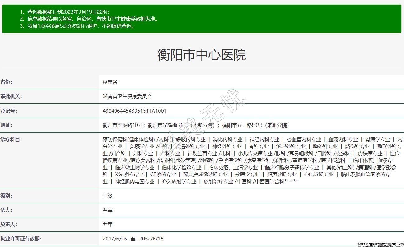 地址:衡陽市雁城路10號;衡陽市光輝街31號(華新分院);衡陽市五一路89號(來雁分院)