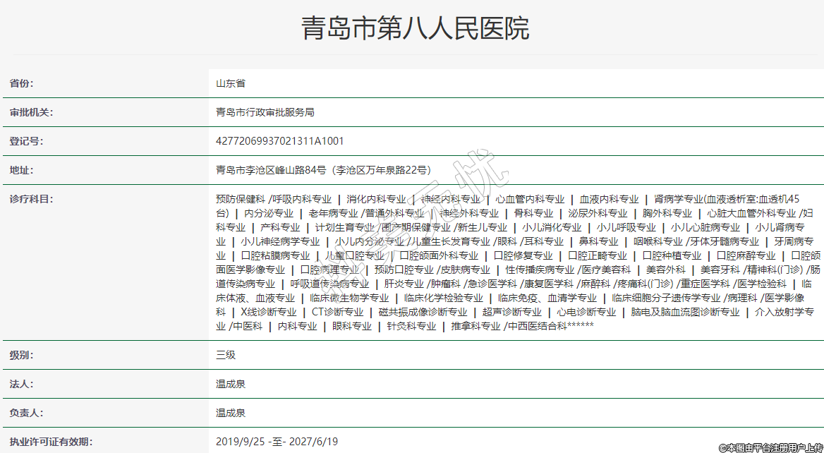 執(zhí)業(yè)許可證有效期:2019/9/25 -至- 2027/6/19