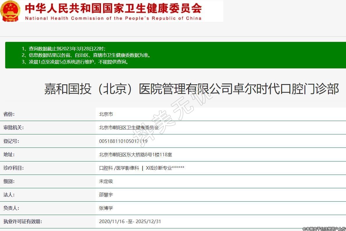 嘉和國投(北京)醫(yī)院管理有限公司卓爾時代口腔門診部