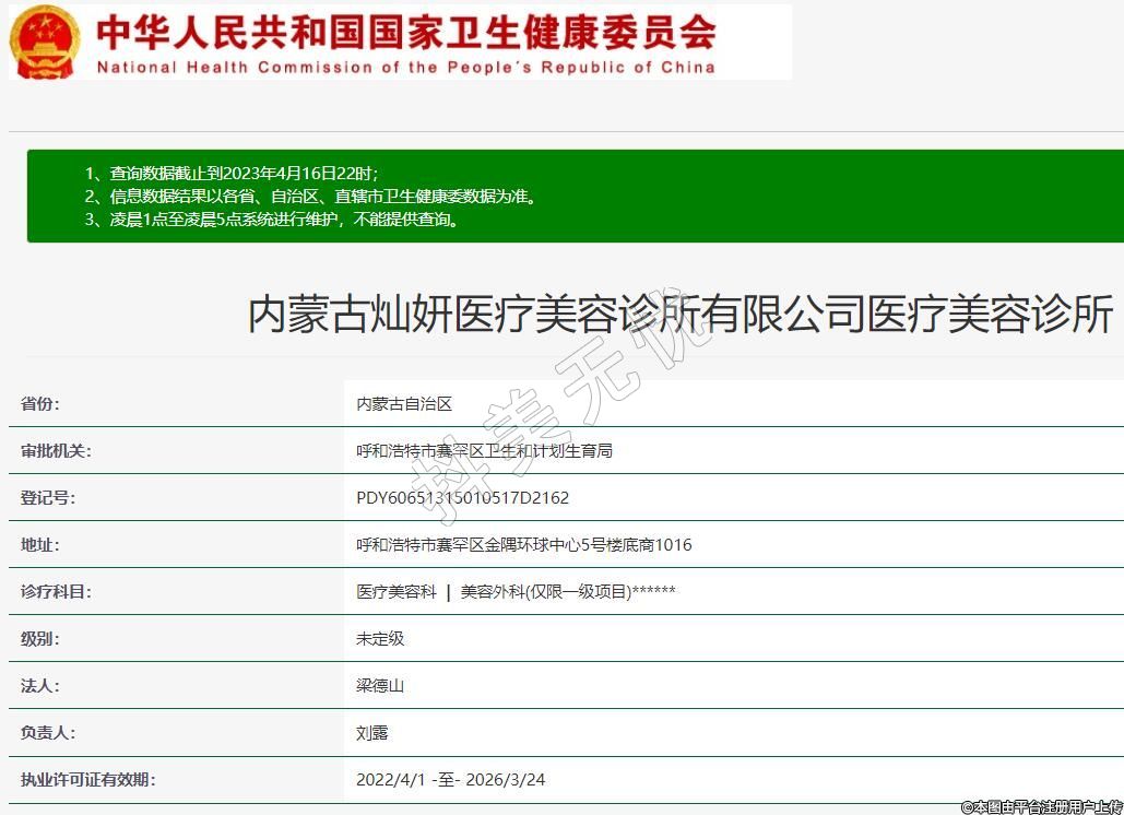 內(nèi)蒙古燦妍醫(yī)療美容診所有限公司醫(yī)療美容診所