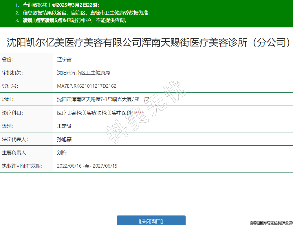 沈陽凱爾億美醫(yī)療美容有限公司渾南天賜街醫(yī)療美容診所(分公司)