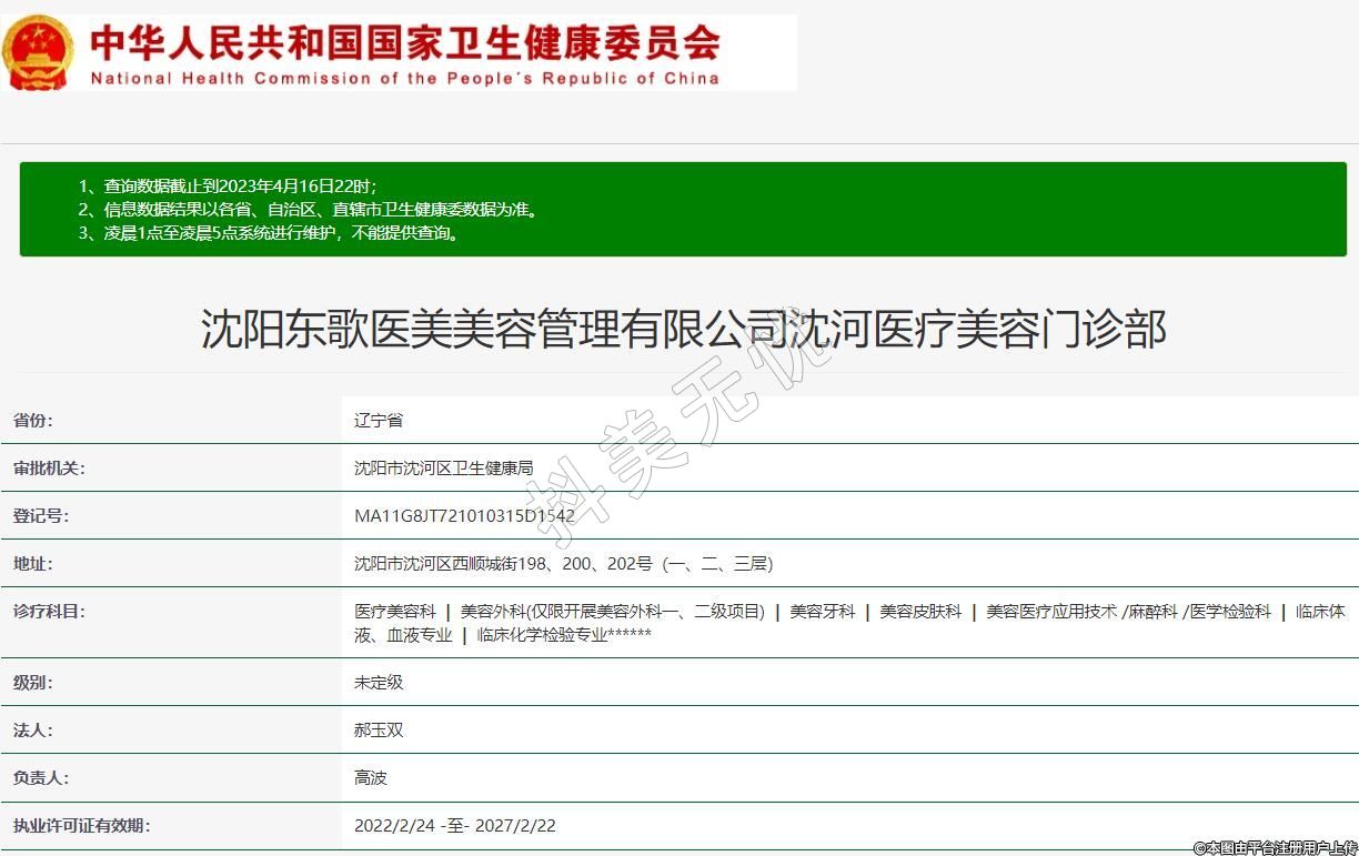 沈陽(yáng)東歌醫(yī)美美容管理有限公司沈河醫(yī)療美容門診部