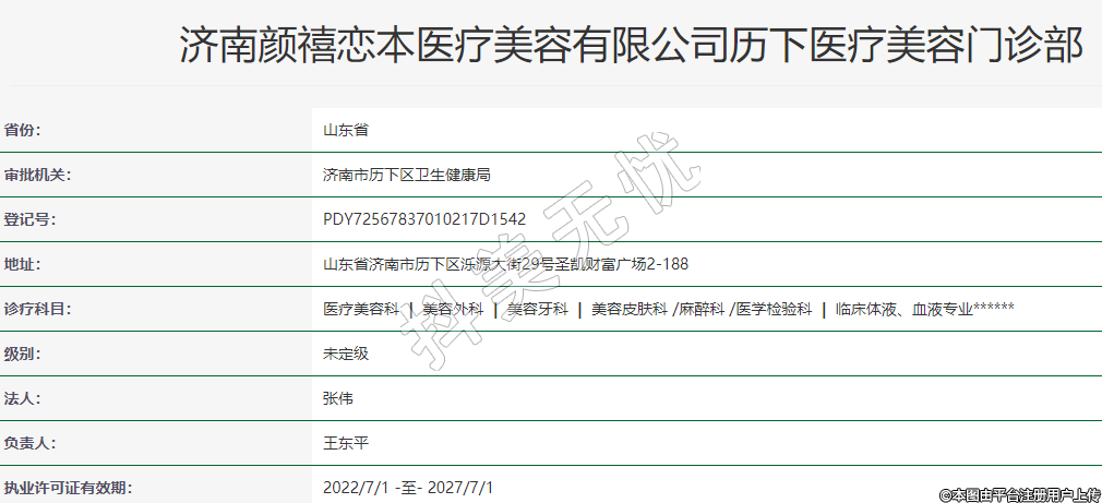 濟(jì)南顏禧戀本醫(yī)療美容有限公司歷下醫(yī)療美容門診部
