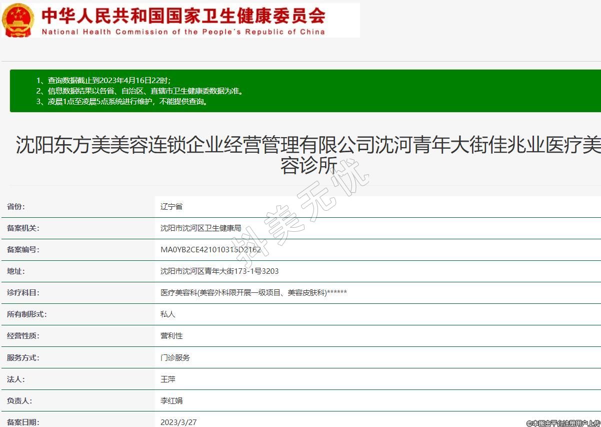 沈陽東方美美容連鎖企業(yè)經(jīng)營管理有限公司沈河青年大街佳兆業(yè)醫(yī)療美容診所