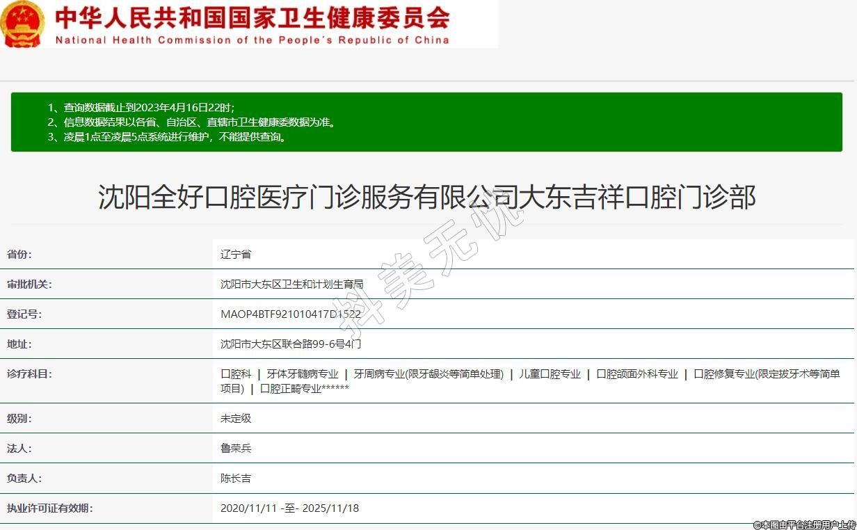 沈陽全好口腔醫(yī)療門診服務(wù)有限公司大東吉祥口腔門診部