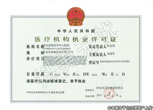 有效期限:自2022年03月25日至2034年07月12日發(fā)證機(jī)關(guān):西安市衛(wèi)生健康委員會