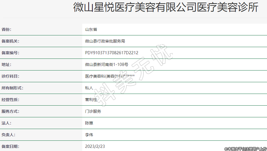 微山星悅醫(yī)療美容有限公司醫(yī)療美容診所