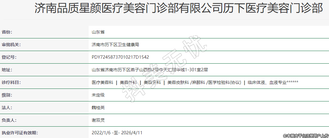 濟南品質星顏醫(yī)療美容門診部有限公司歷下醫(yī)療美容門診部