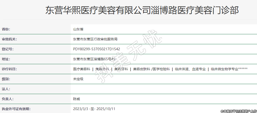 東營(yíng)華熙醫(yī)療美容有限公司淄博路醫(yī)療美容門(mén)診部