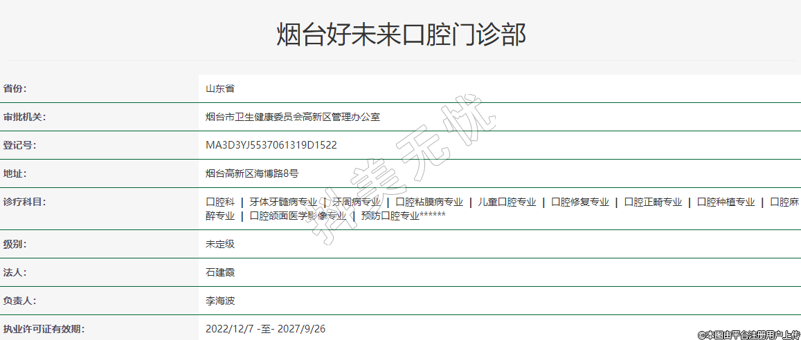 審批機關(guān):煙臺市衛(wèi)生健康委員會高新區(qū)管理辦公室