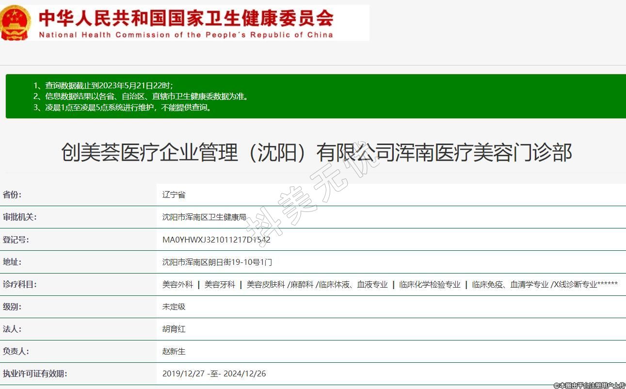 創(chuàng)美薈醫(yī)療企業(yè)管理(沈陽)有限公司渾南醫(yī)療美容門診部