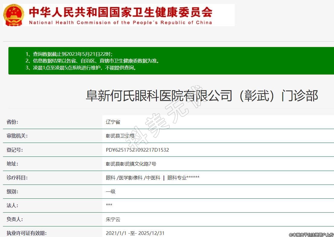阜新何氏眼科醫(yī)院有限公司(彰武)門診部