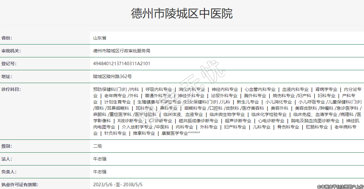 執(zhí)業(yè)許可證有效期:2023/5/6 -至- 2038/5/5