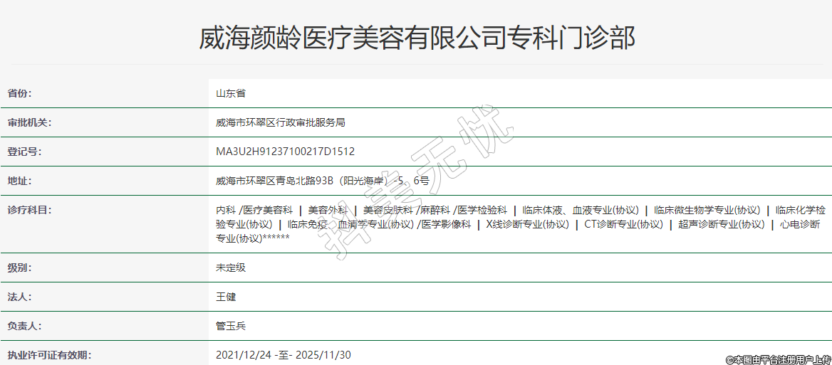 威海顏齡醫(yī)療美容有限公司專科門診部