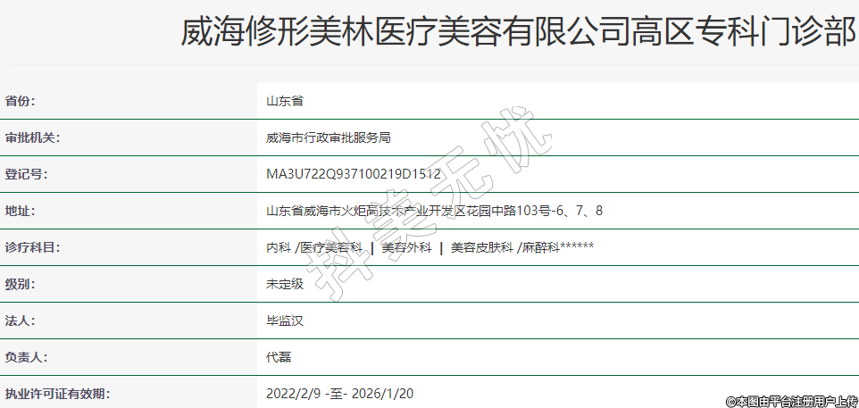 威海修形美林醫(yī)療美容有限公司高區(qū)??崎T診部
