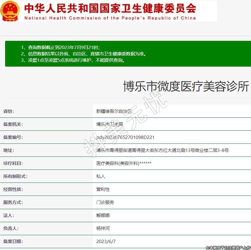 博樂市微度醫(yī)療美容診所,診療科目:醫(yī)療美容科(美容外科)******