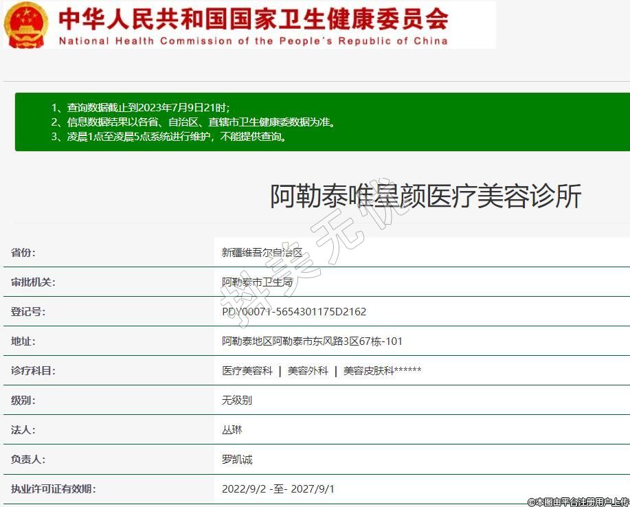 阿勒泰唯星顏醫(yī)療美容診所,診療科目:醫(yī)療美容科 | 美容外科 | 美容皮膚科******