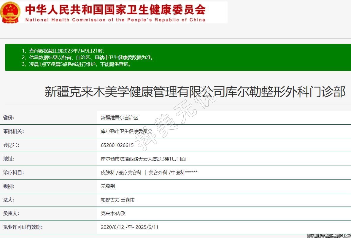 新疆克來木美學健康管理有限公司庫爾勒整形外科門診部