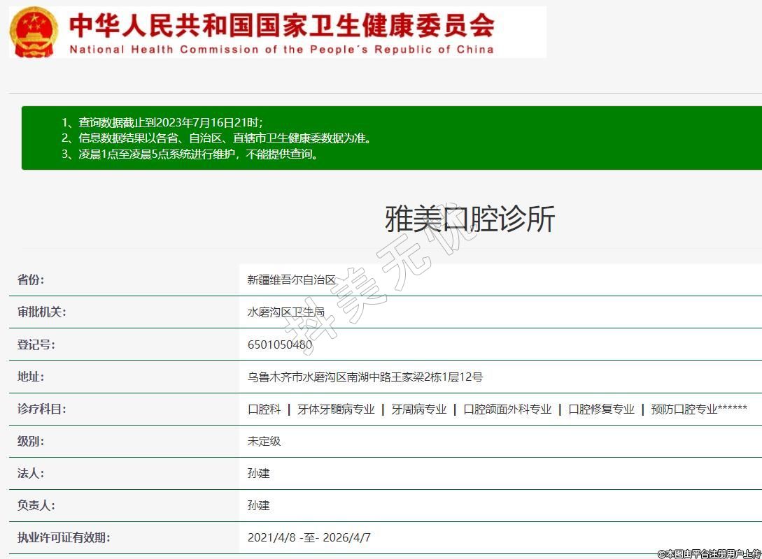 烏魯木齊雅美口腔,診療科目:口腔科 | 牙體牙髓病專業(yè) | 牙周病專業(yè) | 口腔頜面外科專業(yè) | 口腔修復(fù)專業(yè) | 預(yù)防口腔專業(yè)******