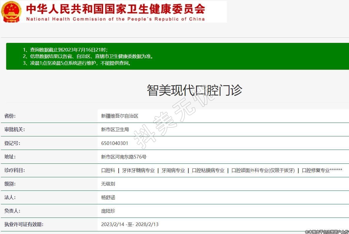烏魯木齊智美現(xiàn)代口腔,診療科目:口腔科 | 牙體牙髓病專業(yè) | 牙周病專業(yè) | 口腔粘膜病專業(yè) | 口腔頜面外科專業(yè)(僅限于拔牙) | 口腔修復(fù)專業(yè)******