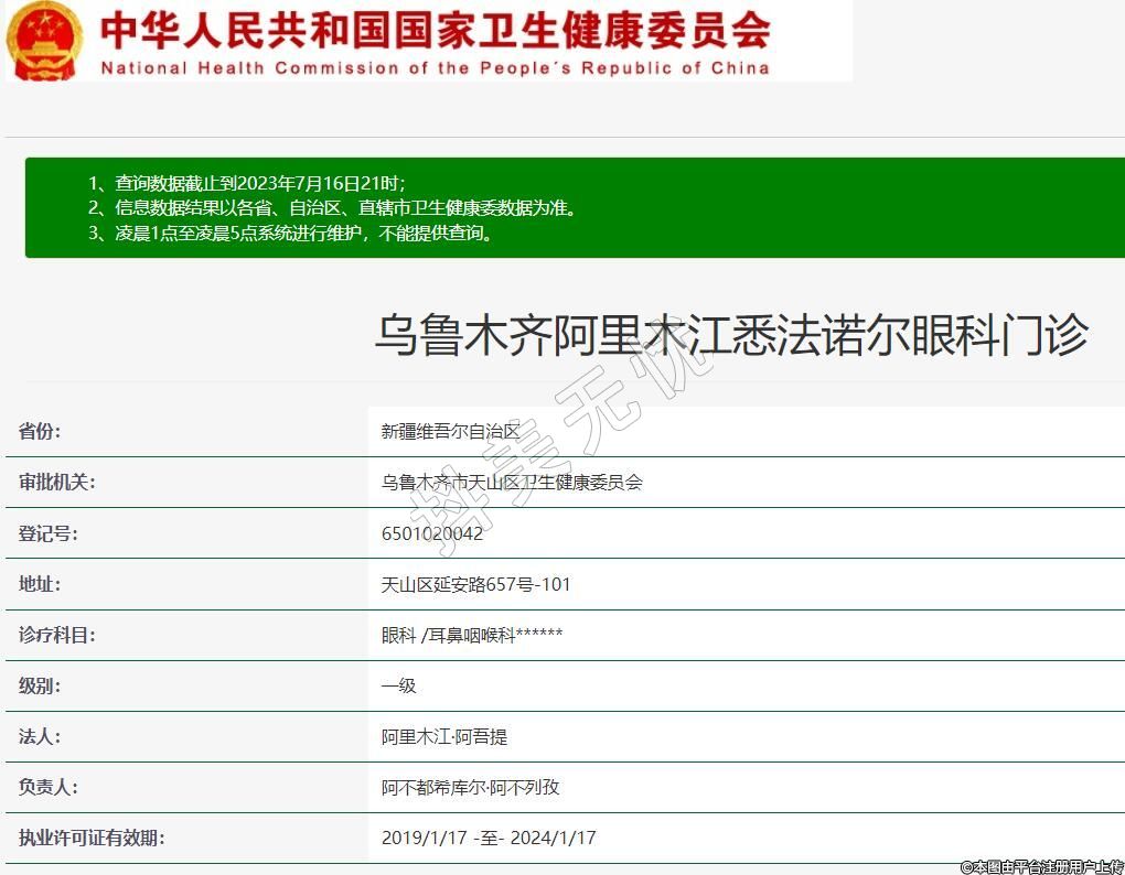 烏魯木齊阿里木江悉法諾爾眼科門(mén)診