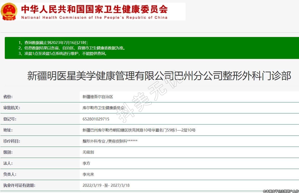 新疆明醫(yī)星美學(xué)健康管理有限公司巴州分公司整形外科門診部