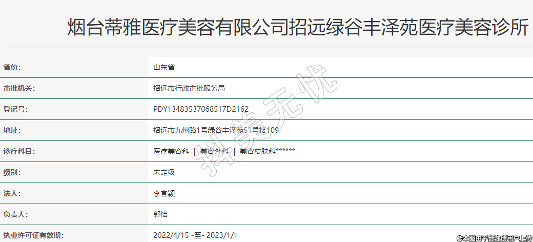 煙臺蒂雅醫(yī)療美容有限公司招遠(yuǎn)綠谷豐澤苑醫(yī)療美容診所