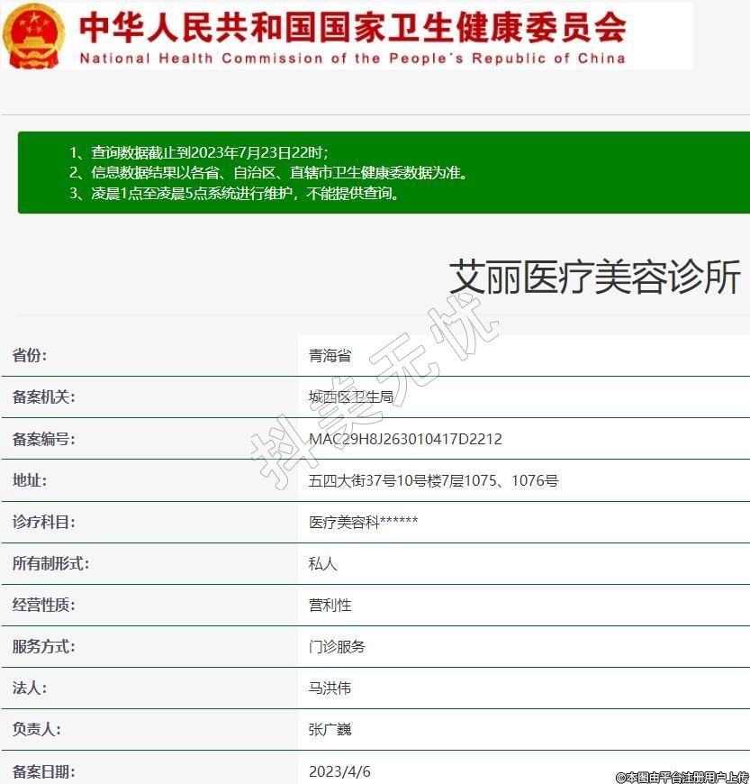 青海艾麗醫(yī)療美容,成立日期:2022-10-19,地址:青海省西寧市城西區(qū)五四大街37號10號樓7層1075、1076號。