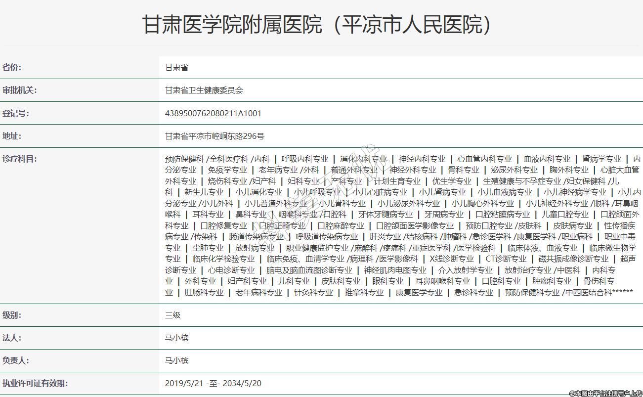 甘肅醫(yī)學(xué)院附屬醫(yī)院(平?jīng)鍪腥嗣襻t(yī)院)