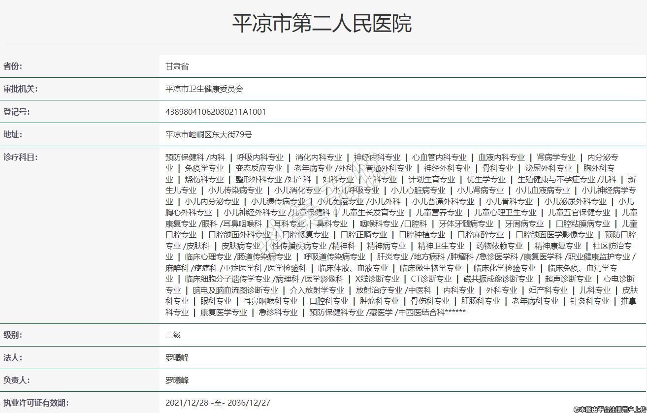 審批機(jī)關(guān):平?jīng)鍪行l(wèi)生健康委員會(huì)