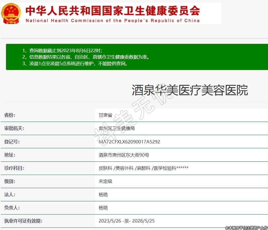 酒泉華美醫(yī)療美容,診療科目:皮膚科 /美容外科 /麻醉科 /醫(yī)學(xué)檢驗科******