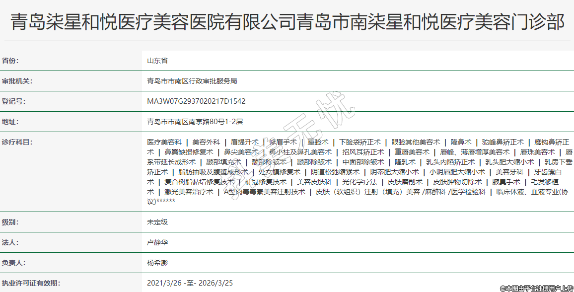 青島柒星和悅醫(yī)療美容醫(yī)院有限公司青島市南柒星和悅醫(yī)療美容門診部