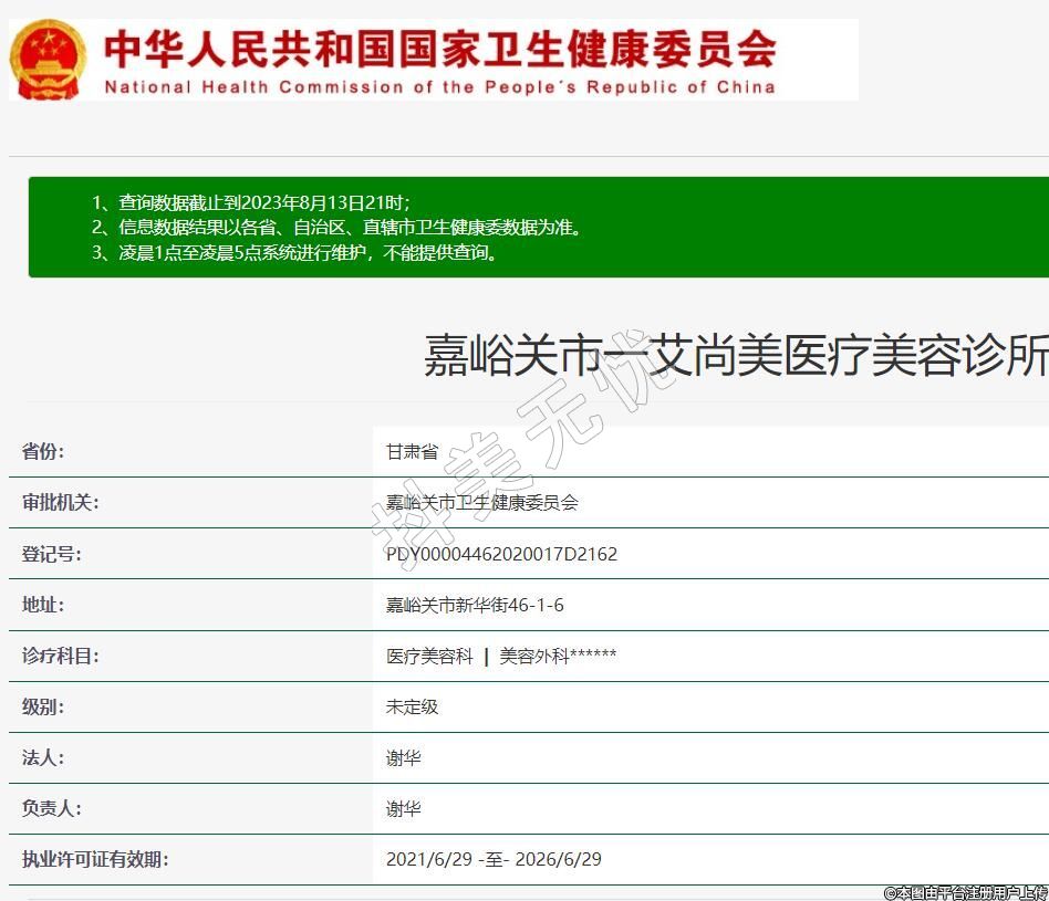 嘉峪關(guān)市一艾尚美醫(yī)療美容診所診療科目:醫(yī)療美容科 | 美容外科******