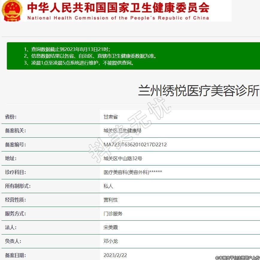蘭州繡悅醫(yī)療美容診療科目:醫(yī)療美容科(美容外科)******