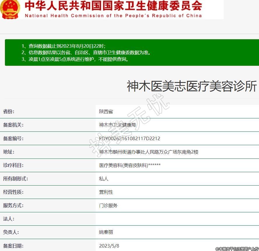 神木醫(yī)美志醫(yī)療美容診所,診療科目:醫(yī)療美容科(美容皮膚科)******