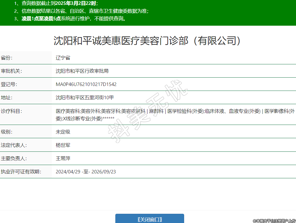 沈陽和平誠美惠醫(yī)療美容門診部(有限公司)