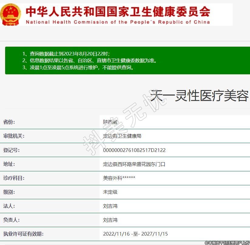定邊天一靈性醫(yī)療美容診所,統一社會信用代碼:92610825MA70F7ET7J,坐落于榆林市定邊縣定邊鎮(zhèn)榮盛花園東門口,于2021年創(chuàng)建。依托先進的理念、領先的技術、優(yōu)質的服務。內部裝飾典雅大氣、低調奢華,擁有溫馨的私密化形象設計空間、標準化無菌層流手術室等高品質硬件設施,讓求美者在舒適寧靜的環(huán)境中完美蛻變。