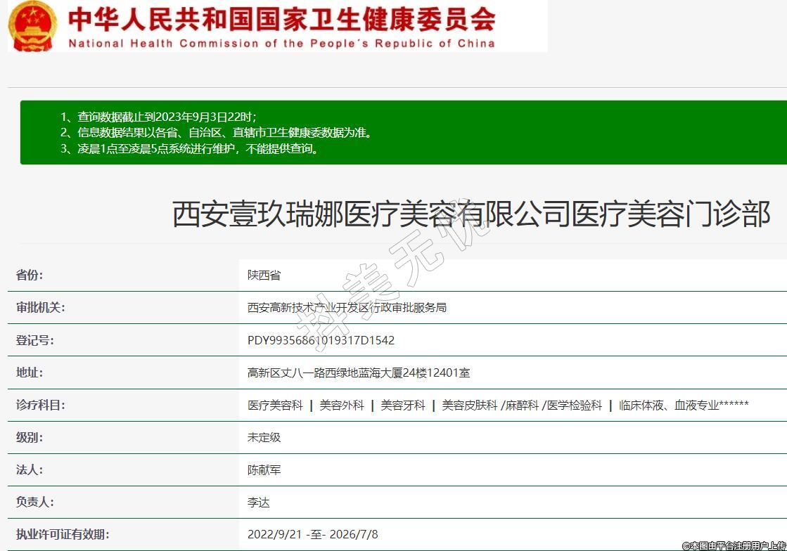 西安壹玖瑞娜醫(yī)療美容有限公司醫(yī)療美容門診部