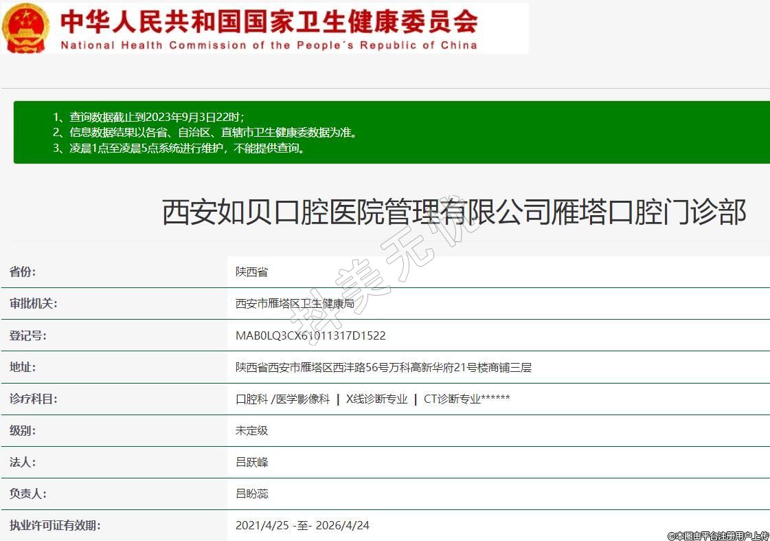西安如貝口腔醫(yī)院管理有限公司雁塔口腔門診部