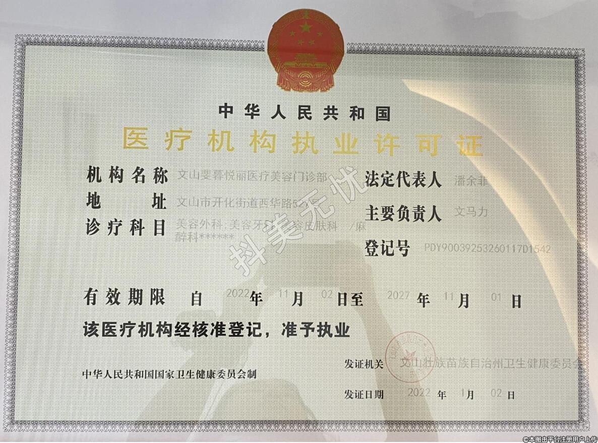 機(jī)構(gòu)名稱:文山斐暮悅麗醫(yī)療美容門診部