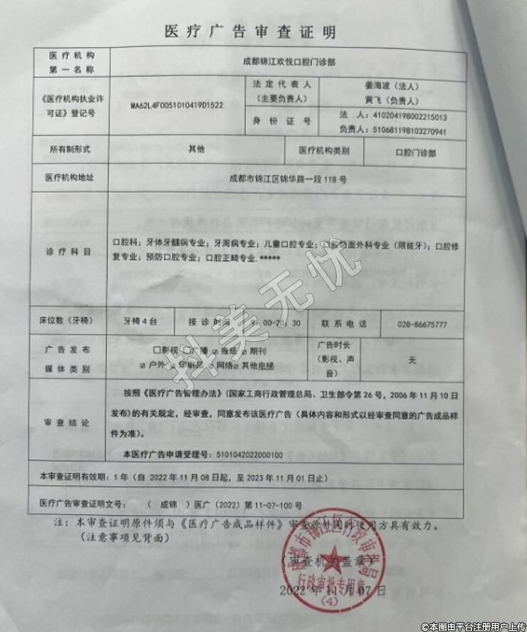 機構名稱:成都錦江歡悅口腔門診部