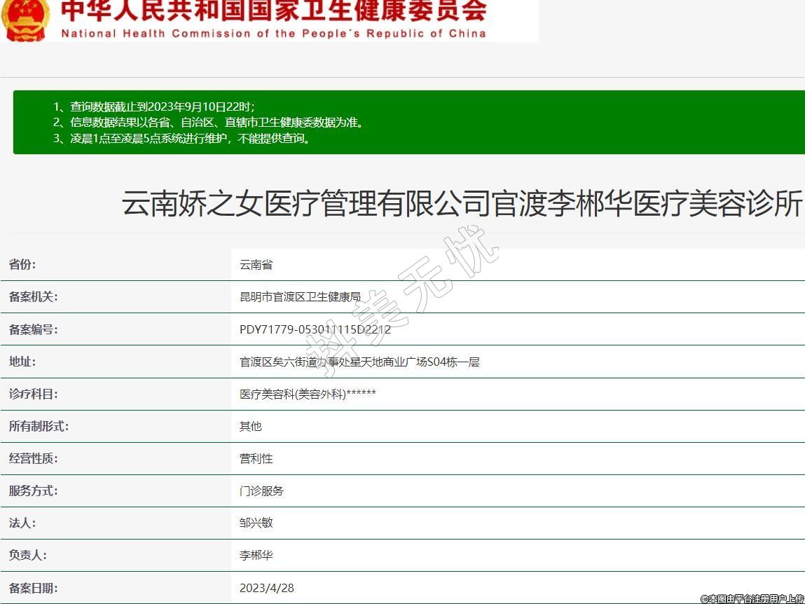 云南嬌之女醫(yī)療管理有限公司官渡李郴華醫(yī)療美容診所