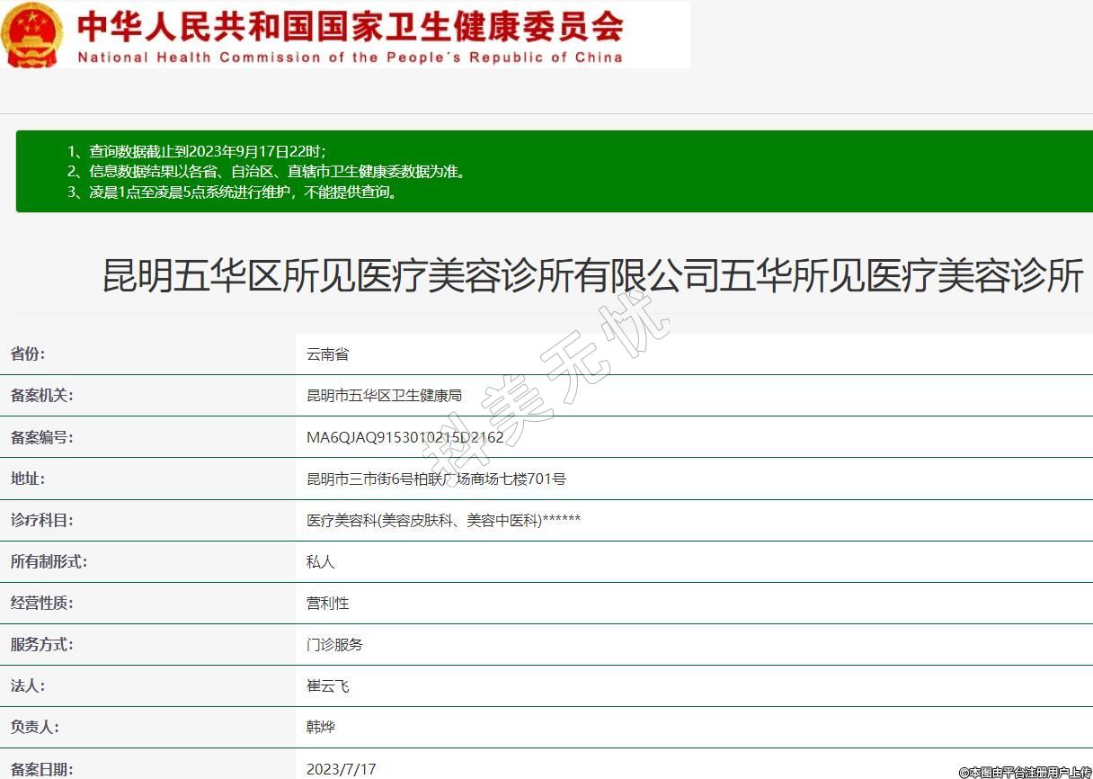 昆明五華區(qū)所見醫(yī)療美容診所有限公司五華所見醫(yī)療美容診所