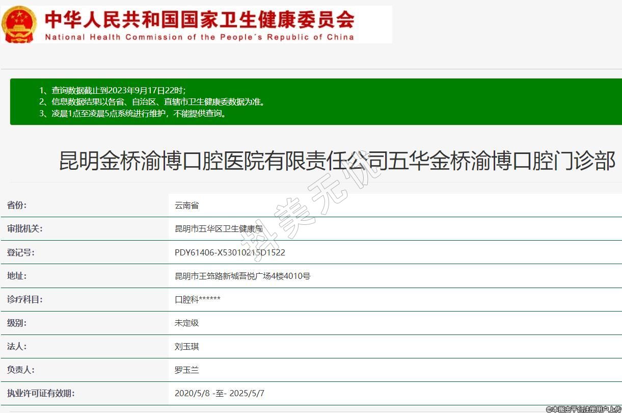 昆明金橋渝博口腔醫(yī)院有限責(zé)任公司五華金橋渝博口腔門診部