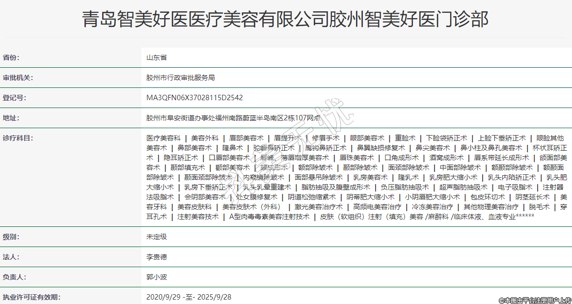 青島智美好醫(yī)醫(yī)療美容有限公司膠州智美好醫(yī)門診部
