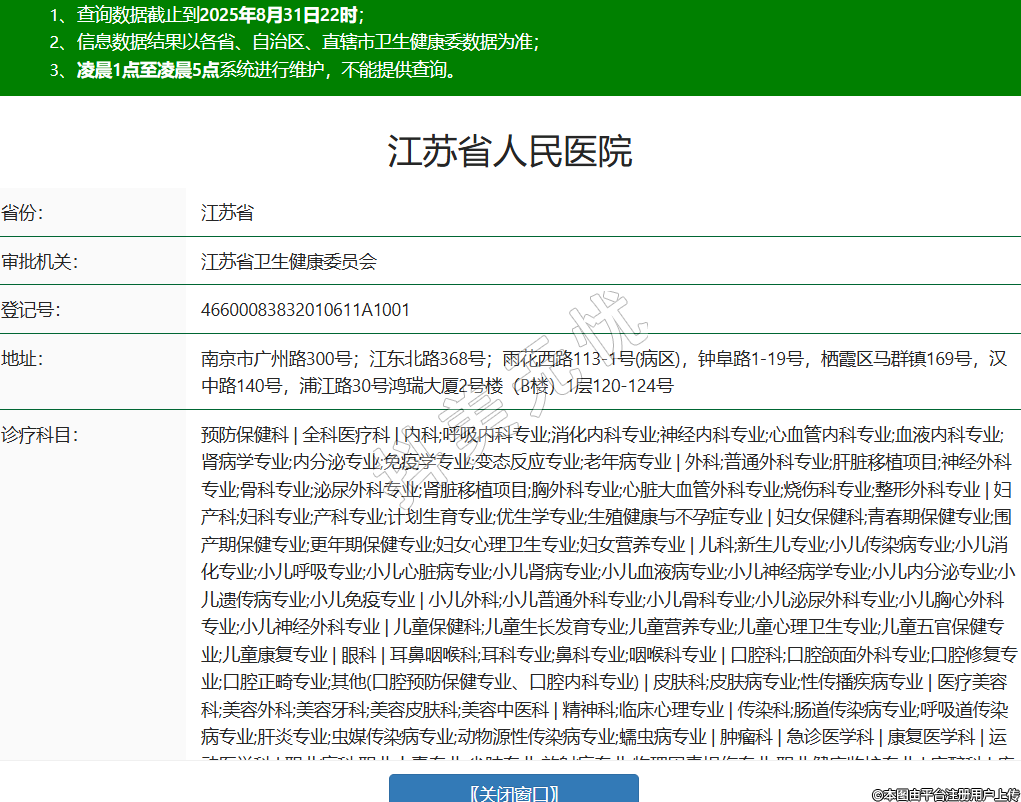 省份:江蘇省審批機(jī)關(guān):江蘇省衛(wèi)生健康委員會(huì)登記號(hào):46600083832010611A1001地址:南京市廣州路300號(hào);江東北路368號(hào);雨花西路113-1號(hào)(病區(qū)),鐘阜路1-19號(hào),棲霞區(qū)馬群鎮(zhèn)169號(hào),漢中路140號(hào),浦江路30號(hào)鴻瑞大廈2號(hào)樓(B樓)1層120-124號(hào)診療科目:預(yù)防保健科 | 全科醫(yī)療科 | 內(nèi)科;呼吸內(nèi)科專業(yè);消化內(nèi)科專業(yè);神經(jīng)內(nèi)科專業(yè);心血管內(nèi)科專業(yè);血液內(nèi)科專業(yè);腎病學(xué)專業(yè);內(nèi)分泌專業(yè);免疫學(xué)專業(yè);變態(tài)反應(yīng)專業(yè);老年病專業(yè) | 外科;普通外科專業(yè);肝臟移植項(xiàng)目;神經(jīng)外科專業(yè);骨科專業(yè);泌尿外科專業(yè);腎臟移植項(xiàng)目;胸外科專業(yè);心臟大血管外科專業(yè);燒傷科專業(yè);整形外科專業(yè) | 婦產(chǎn)科;婦科專業(yè);產(chǎn)科專業(yè);計(jì)劃生育專業(yè);優(yōu)生學(xué)專業(yè);生殖健康與不孕癥專業(yè) | 婦女保健科;青春期保健專業(yè);圍產(chǎn)期保健專業(yè);更年期保健專業(yè);婦女心理衛(wèi)生專業(yè);婦女營(yíng)養(yǎng)專業(yè) | 兒科;新生兒專業(yè);小兒傳染病專業(yè);小兒消化專業(yè);小兒呼吸專業(yè);小兒心臟病專業(yè);小兒腎病專業(yè);小兒血液病專業(yè);小兒神經(jīng)病學(xué)專業(yè);小兒內(nèi)分泌專業(yè);小兒遺傳病專業(yè);小兒免疫專業(yè) | 小兒外科;小兒普通外科專業(yè);小兒骨科專業(yè);小兒泌尿外科專業(yè);小兒胸心外科專業(yè);小兒神經(jīng)外科專業(yè) | 兒童保健科;兒童生長(zhǎng)發(fā)育專業(yè);兒童營(yíng)養(yǎng)專業(yè);兒童心理衛(wèi)生專業(yè);兒童五官保健專業(yè);兒童康復(fù)專業(yè) | 眼科 | 耳鼻咽喉科;耳科專業(yè);鼻科專業(yè);咽喉科專業(yè) | 口腔科;口腔頜面外科專業(yè);口腔修復(fù)專業(yè);口腔正畸專業(yè);其他(口腔預(yù)防保健專業(yè)、口腔內(nèi)科專業(yè)) | 皮膚科;皮膚病專業(yè);性傳播疾病專業(yè) | 醫(yī)療美容科;美容外科;美容牙科;美容皮膚科;美容中醫(yī)科 | 精神科;臨床心理專業(yè) | 傳染科;腸道傳染病專業(yè);呼吸道傳染病專業(yè);肝炎專業(yè);蟲(chóng)媒傳染病專業(yè);動(dòng)物源性傳染病專業(yè);蠕蟲(chóng)病專業(yè) | 腫瘤科 | 急診醫(yī)學(xué)科 | 康復(fù)醫(yī)學(xué)科 | 運(yùn)動(dòng)醫(yī)學(xué)科 | 職業(yè)病科;職業(yè)中毒專業(yè);塵肺專業(yè);放射病專業(yè);物理因素?fù)p傷專業(yè);職業(yè)健康監(jiān)護(hù)專業(yè) | 麻醉科 | 疼痛科 | 重癥醫(yī)學(xué)科 | 醫(yī)學(xué)檢驗(yàn)科;臨床體液、血液專業(yè);臨床微生物學(xué)專業(yè);臨床化學(xué)檢驗(yàn)專業(yè);臨床免疫、血清學(xué)專業(yè);臨床細(xì)胞分子遺傳學(xué)專業(yè) | 病理科 | 醫(yī)學(xué)影像科;X線診斷專業(yè);CT診斷專業(yè);磁共振成像診斷專業(yè);核醫(yī)學(xué)專業(yè);超聲診斷專業(yè);心電診斷專業(yè);腦電及腦血流圖診斷專業(yè);神經(jīng)肌肉電圖專業(yè);介入放射學(xué)專業(yè);放射治療專業(yè) | 中醫(yī)科;針灸科專業(yè);推拿科專業(yè)******級(jí)別:三級(jí)法定代表人:劉云主要負(fù)責(zé)人:劉云執(zhí)業(yè)許可證有效期:2019/12/06 -至- 2034/12/05 -