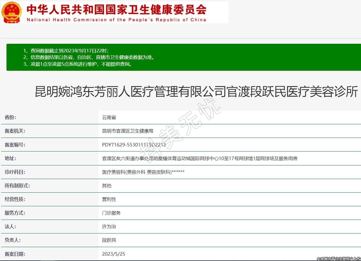 昆明婉鴻東芳麗人醫(yī)療管理有限公司官渡段躍民醫(yī)療美容診所