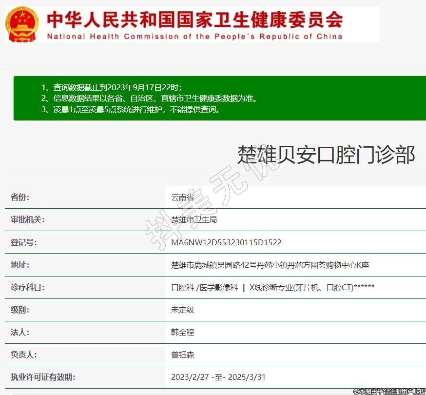審批機(jī)關(guān):楚雄市衛(wèi)生局